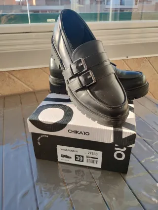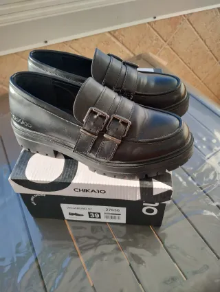 Mocasines de la marca Chika10. Muy cómodos. Los he usado 1 ó 2 veces. Los vendo porque me he pasado al calzado barefoot. - Fabricados en piel vegana. - Diseño con doble hebilla. - Suela gruesa y resistente.