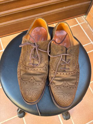 Elegantes zapatos de ante con diseño brogue. - Material exterior de ante. - Detalle de picado decorativo. - Cierre con cordones.