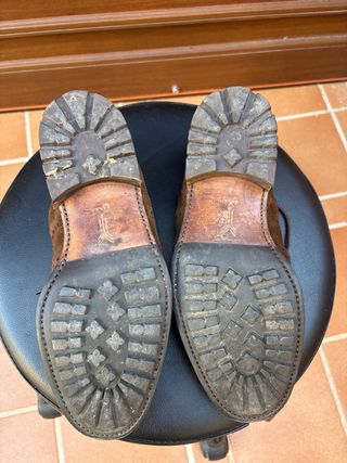 Zapatos de la prestigiosa marca Yanko, modelo 6047, talla 6,5 UK (equivalente a 40 EU). Fabricados en piel de alta calidad, con construcción artesanal Goodyear Welted, suela de cuero reforzada con goma en puntera y tacón. 👉 Características: • Color marrón cuero, elegante y versátil. • Piel auténtica de gran calidad, suave y resistente. • Hechos en España por Yanko, referente en calzado clásico. • Talla 6,5 UK (40 EU aprox.). • Usados, con marcas propias del uso, pero en buen estado general y con suela reforzada para alargar la vida útil. Perfectos para alguien que busque un zapato de vestir clásico, elegante y duradero.