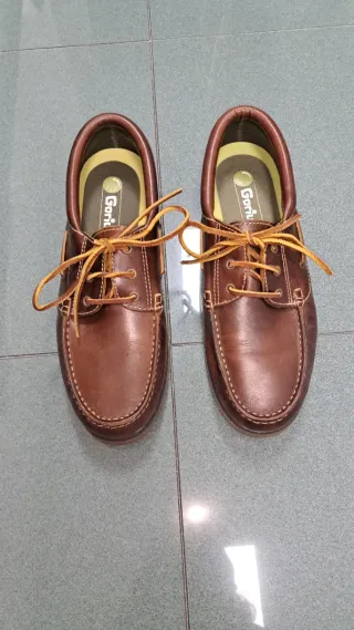 Zapatos náuticos de la marca Gorila en color marrón. Un clásico para cualquier ocasión. Estan como nuevos. Tienen solo 4 puestas. - Fabricados en piel de muy buena calidad. - Suela gruesa antideslizante. - Cierre con cordones de cuero - Detalle de pespuntes. Para uso diario, vestir, informal, diario