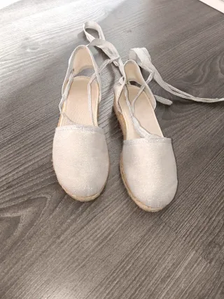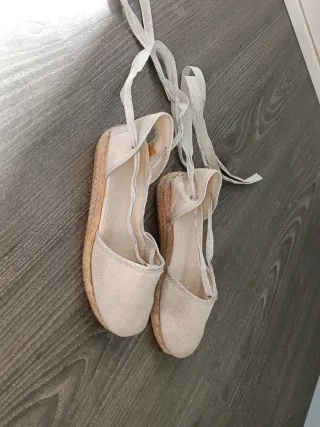 Usadas una vez. Super comodas. Esparteñas de la marca Alpargatas con un diseño de atar. - Material exterior de esparto. - Cintas de atar negras. - Detalle de tiras negras en la parte delantera.