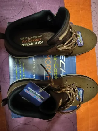Zapatos Skechers para hombre en tonos marrones. Cuentan con la tecnología Lite-Weight y Memory Foam para mayor comodidad. - Diseño ligero. - Plantilla Air-Cooled Memory Foam.Son nuevos, sin estrenar