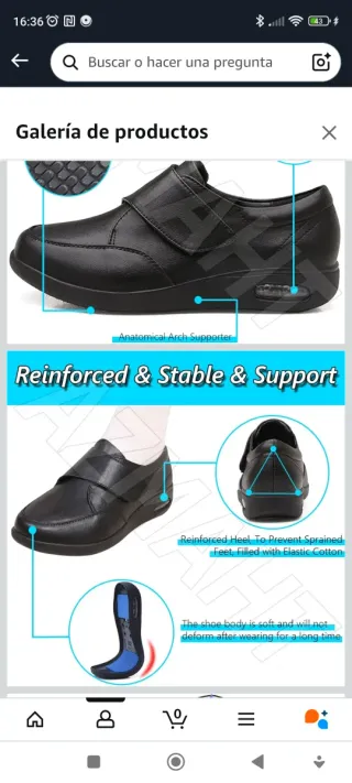 Zapato diseñado para personas con pie diabético y empeine alto. Muy cómodos, apenas pesan. Nuevos sin estrenar. En a.m.a.z.o.n cuestan 60€. Tengo 2 pares. - Color negro. - Incluye plantilla de confort. - Con cámara de aire.