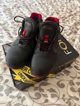 Muy buen estado Calzado de seguridad Forli con un diseño moderno y detalles en rojo. - Cierre con cordones. - Cuello acolchado para mayor comodidad. - Suela de goma resistente.