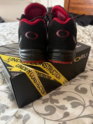 Zapatos de estilo único, casi nuevos. - Diseño con detalles en rojo. - Cierre con cordones negros. - Suela blanca.