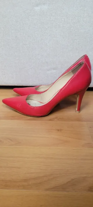 Elegantes zapatos de tacón estilo salón en un vibrante color rojo cereza. Perfectos para añadir un toque de color a cualquier atuendo. - Diseño de punta fina. - Tacón alto. - Acabado brillante.