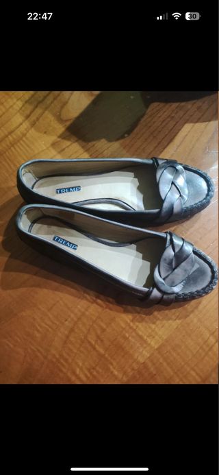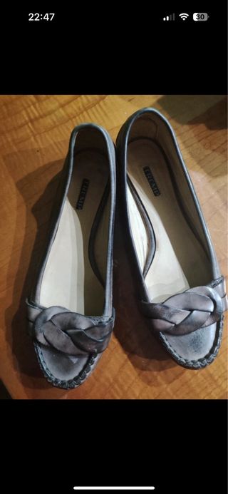 Bailarinas TREMP cuero gris/plata. Talla 37