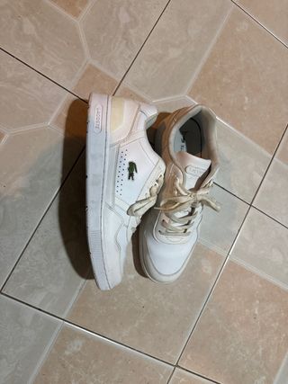 Zapatos de estilo casual en color blanco.Detalle del logo del cocodrilo.Cierre con cordones.Los cordones los lavo y están impecables.