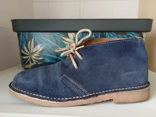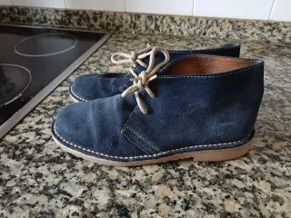 Zapatos tipo carapijos de ante azul. - Cierre con cordones. - Detalle de pespuntes. - Logo de la marca en la plantilla. La suela mide 29 cm Muy poco uso