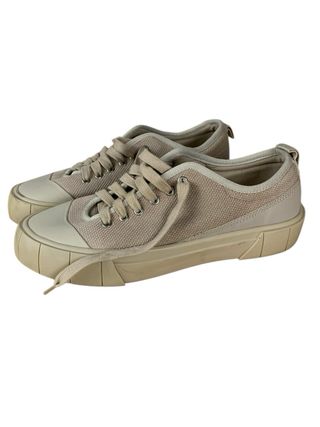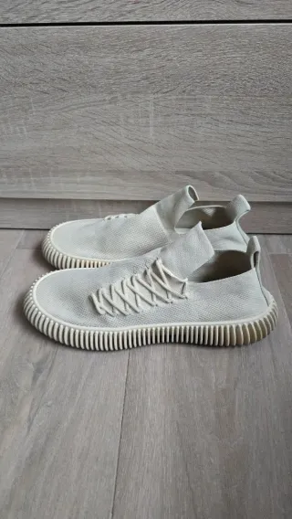 Zapatos de Zara en color beige, talla 42. Se encuentran en muy buen estado. - Diseño de zapatillas bajas. - Cierre con cordones. - Suela de goma gruesa.