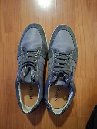 Zapatos casuales de la marca Geox en color gris. Usados solo 1 vez - Diseño moderno. - Cierre con cordones. - Detalle de costuras.