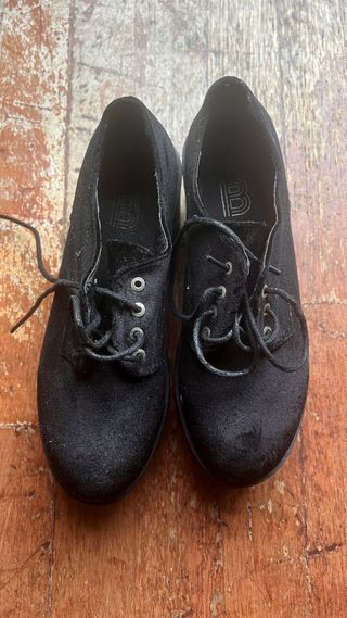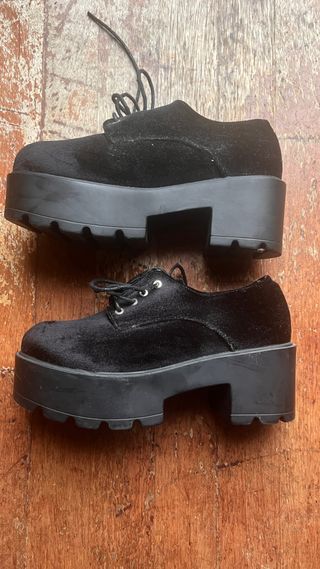 Zapatos de plataforma con cordones. - Material exterior de terciopelo. - Suela gruesa de goma. - Cierre de cordones.