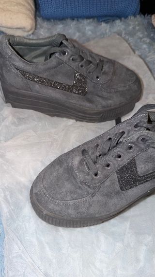 Zapatos plataforma grises con brillantes