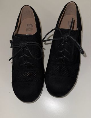 Zapatos de ante con plataforma y cordones. usado un par de veces. - Diseño con perforaciones. - Tacón grueso. - Estilo Oxford.