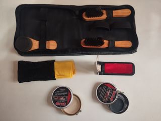 contiene calzador, gamuza, cremas y cepillos