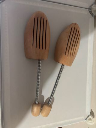 Vendo par de hormas de madera con sistema ajustable, ideales para mantener la forma del zapato y evitar arrugas. Están como nuevas, en muy buen estado y con muy poco uso. Las vendo porque ya no las necesito. Aptas para zapatos de vestir o casual.