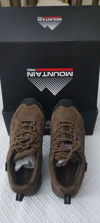Zapatos de paseo de la marca Mountain Pro en color marrón. Sólo 2 mañanas de uso ya que me quedan pequeños . - Diseño robusto para actividades al aire libre. - Cierre con cordones. - Detalle de tira en el talón.