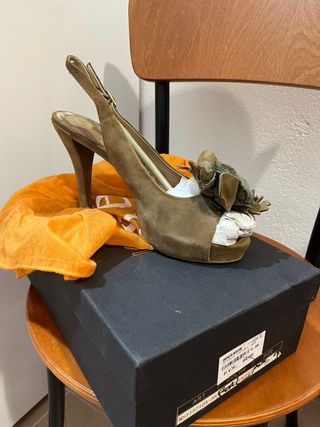 Zapatos Peep Toe Marrón Chocolate Talla 35