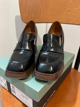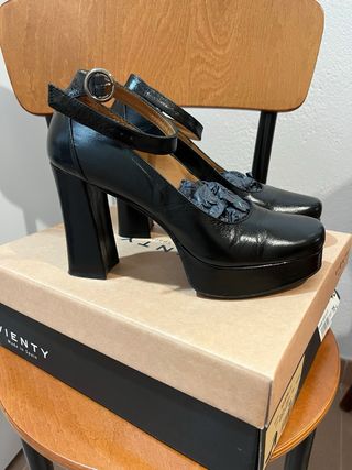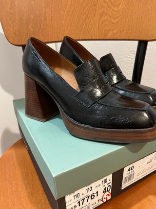 Zapato estilo castellano con plataforma. Usados en una ocasión - Diseño brillante. - Detalle de pespuntes en la pala. - Suela gruesa y moderna.