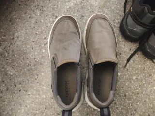 Zapatos casuales Geox en tonos grises. Perfectos para el día a día. Sin estrenar ningún uso - Diseño slip-on. - Detalle de costuras. - Suela con tecnología Geox Respira.
