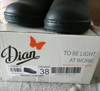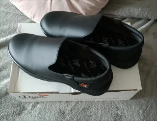 Zapatos de trabajo negros para mujer para camerar de piso, para cocinera ect ..... Se a usado media hora solo . Costaron 45€ en una tienda comprado en octubre . - Marca Dian. - Diseño antideslizante y antibacteriano.