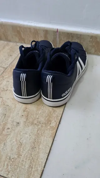 Zapatos deportivos Adidas en color azul marino con detalles blancos. Perfectos para el día a día. - Diseño clásico con las tres franjas. - Cierre de cordones.