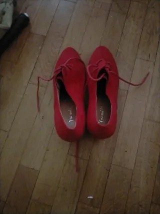 Elegantes zapatos rojos para mujer. - Diseño moderno y cómodo. - Material exterior de piel. - Suela de goma.