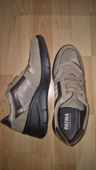 Zapatos casuales de la marca PAYMA. - Color beige y marrón. - Diseño moderno y cómodo. - Logo de la marca en la plantilla. -Muy comodos. -Solo los usado una vez.