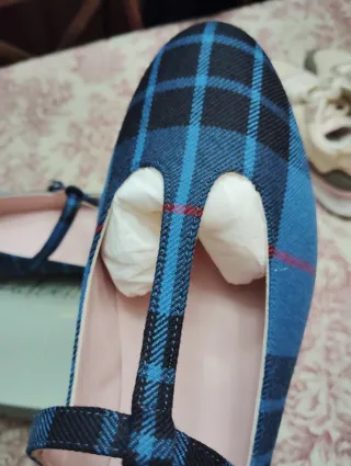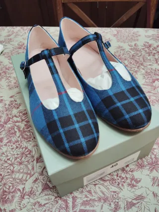Elegantes zapatos T-bar estampado tartán. Colección tartán de Bohemian shoes 2026. Sin estrenar. Solo usado en casa