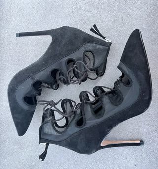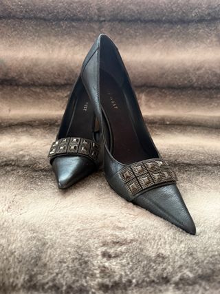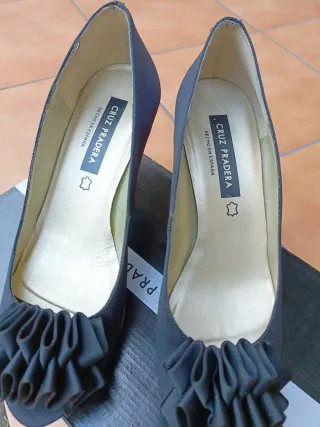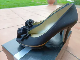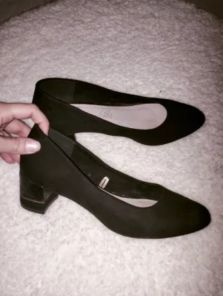 Elegantes zapatos de tacón de la marca Di Fontana. Solo un uso ,están impecables son de piel!! Van genial para estas fiestas Navideñas - Diseño en color negro. - Detalle de brillo en la punta. - Acabado en ante.Precio tienda 69'99