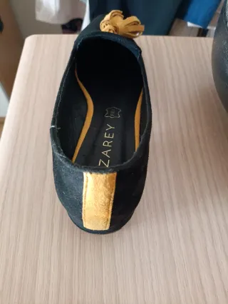 37 EU. Marca Azorey. Zapatos de tacón con detalle de borlas en la punta. Color verde oscuro/ verde oliva. Son de piel y ante. Tacón ancho de 2'5cm, no plataforma. Están en buen estado. Fueron usadas en solo dos ocasiones. Vienen con el embalaje original (caja y protecciones). Son de color marrón y verde oliva, con un diseño elegante y sofisticado.