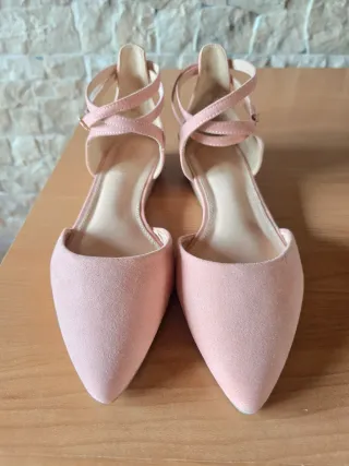 Elegantes zapatos planos de color rosa, perfectos para añadir un toque de estilo a tu atuendo. - Diseño de punta fina. - Tiras ajustables al tobillo con hebilla dorada. - Material exterior tipo ante.
