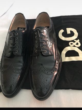 Elegantes zapatos de cordones D&G. - Diseño clásico con detalles de picado. - Acabado brillante. - Cierre de cordones.