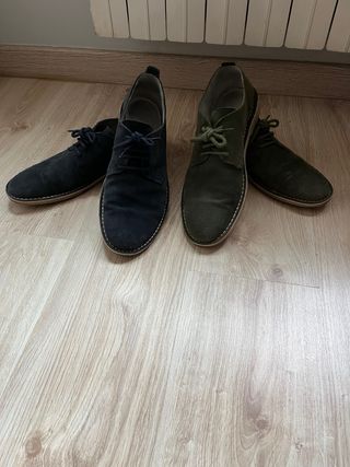 Lote de dos pares de zapatos de piel serraje Benetton. - Zapatos de ante azul marino. - Zapatos de ante verde oliva. - Talla 45.
