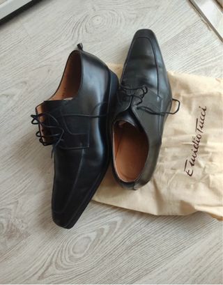Elegantes zapatos de vestir de la marca Emidio Tucci. Usados solo en la ceremonia. - Diseño clásico y atemporal. - Fabricados en piel. - Cierre con cordones.