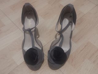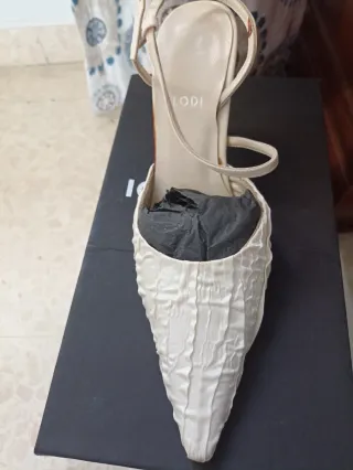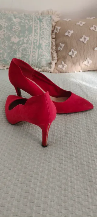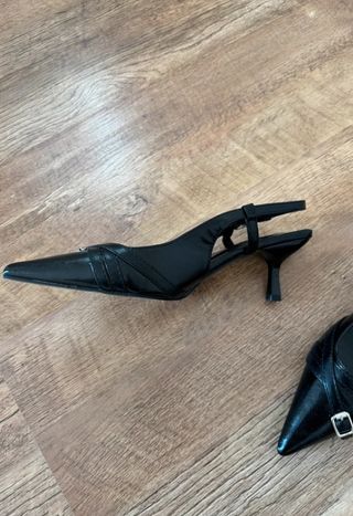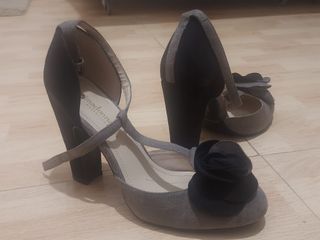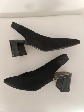 Elegantes zapatos de tacón para mujer. Usados un día para un evento, están en perfecto estado. - Diseño slingback. - Tacón grueso con acabado brillante. - Material exterior tipo ante.