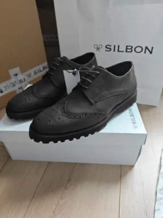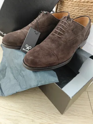 Elegantes zapatos de ante en color marrón. Talla 43, sin estrenar - Material: Piel ante. - Marca: Silbon.