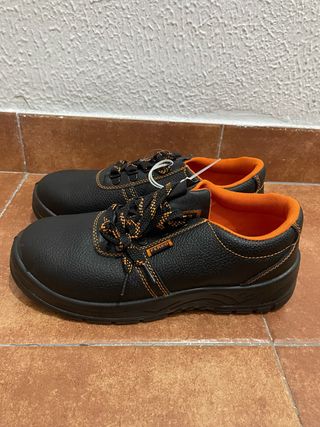 Zapatos de seguridad de estilo casual. - Material exterior de ante. - Cierre con cordones. - Suela de goma resistente.