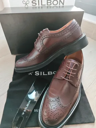 Elegantes zapatos Silbon de vestir de piel. Talla 43 / Color Burdeos - Diseño clásico con picado - Cordones para un ajuste perfecto. -