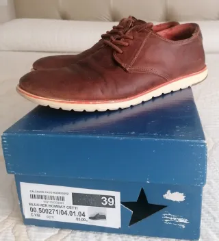 Zapatos de piel de la marca Cetti en color marrón. - Talla 39. - Diseño tipo blucher. - Suela de goma.