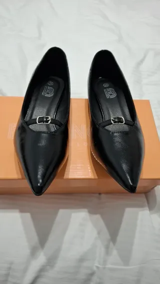 Elegantes zapatos de tacón medio, fabricados en piel vegana. Sin estrenar - Color: Negro - Talla EU: 38 - Talla UK: 5 - Talla US: 7.5