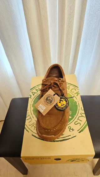 Zapatos de piel vuelta, Panama Jack en color marrón. Perfectos para un estilo casual y cómodo. Usados unas horas ... Me quedan pequeños y se me pasaron los dias para devolverlos .. Creo que me costaron 149 €, con lo que el precio de 60 esta mas que ajustado,son una ganga. Hay otro similir en mi perfil .