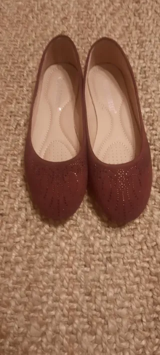 Elegantes zapatos planos de piel vuelta en un bonito color burdeos. Perfectos para cualquier ocasión. - Detalle de pedrería en la punta. - Interior con plantilla acolchada para mayor comodidad. - Suela de goma antideslizante.