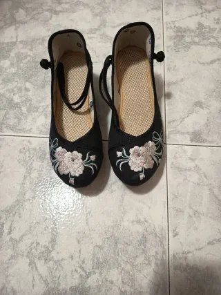 Zapatos mujer negro con flores número 38
