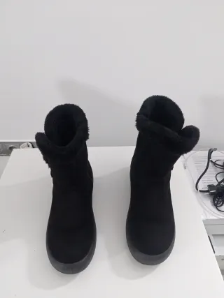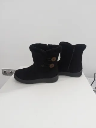 Botas de invierno número 40. Diseño con forro interior de pelo. Cierre de cremallera lateral y detalle de dos botones decorativos en el otro lado. Son de segunda mano se han usado muy pocas veces. Talla 40.