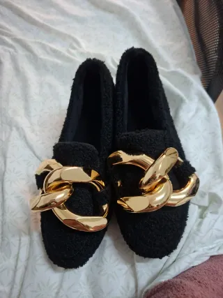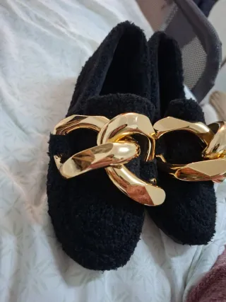 Zapatos negros con cadena dorada