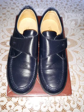 Se venden zapatos colegiales de piel, prácticamente sin usar. Son de color azul marino y lucen impecables. - Fabricados en piel. - Estilo náutico. - Suela de goma resistente. - Muy cómodos.