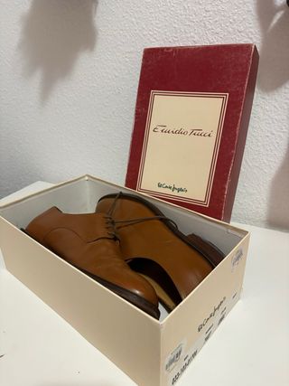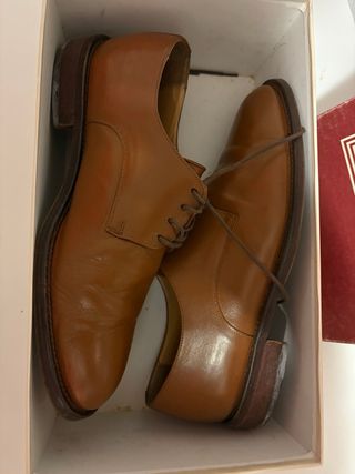 Zapatos de vestir clásicos de color marrón en talla 40. Diseño elegante tipo Oxford, perfectos para eventos, trabajo o ocasiones formales. Están en buen estado y listos para usar. En las fotos se puede ver el estado y la talla marcada en el interior. Buena opción si buscas zapatos elegantes sin gastar lo que cuestan nuevos. Se pueden recoger en persona o enviar.