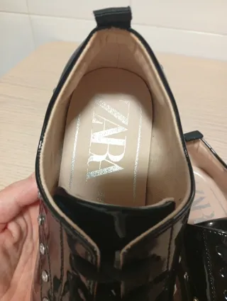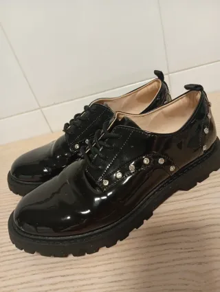 Elegantes zapatos de charol con un toque brillante. Zara - Diseño tipo Oxford. - Adornados con pedrería. - Suela gruesa y resistente.