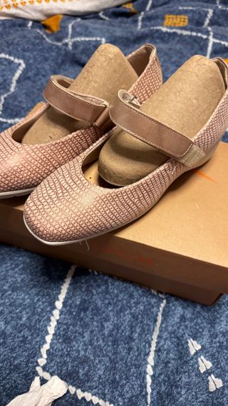 Elegantes zapatos rosas con un diseño texturizado y una práctica tira. Marron es talla 37 Rosa es talla 36 Utilizado 1 vez Tengo los tickets y las cajas Lo vendo porque le queda pequeño El precio es de los dos juntos Si quiere por separado háblame por privado - Acabado con textura. - Tira de ajuste. - Suela cómoda.